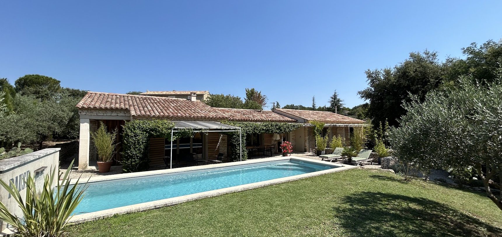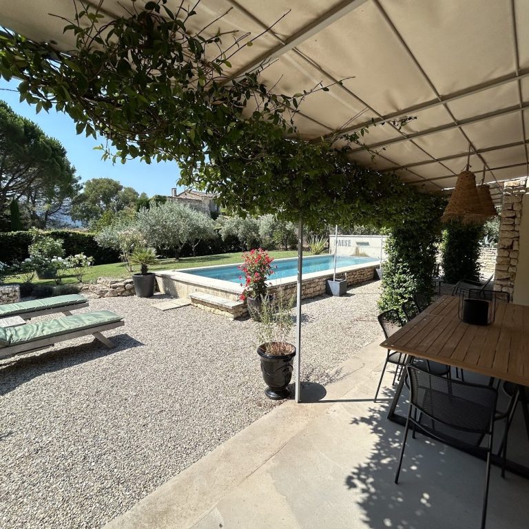 Le terrain arboré de 1000m2 répondra à toutes vos envies avec une piscine de 9m x 4m, un espace pelouse, une grande terrasse ombragée, différents espaces détentes, un parking permettant de garer vos voitures à l’ombre. L’exposition Sud permet de profiter du soleil toute la journée. Un terrain de pétanque se trouve à l’arrière de la maison. La maison est située dans un petit hameau calme à 5 minutes en voiture du centre village de Gordes.